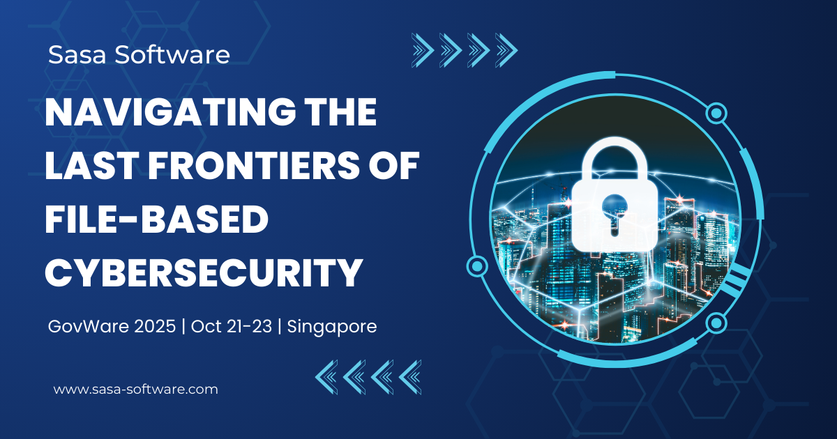 Sasa Software specializes in advanced file-based threat protection for government, healthcare, finance, and critical infrastructure organizations across APAC. We’ll be demonstrating our latest file security innovations at GovWare 2025, October 21-23 at Sands Expo Singapore.